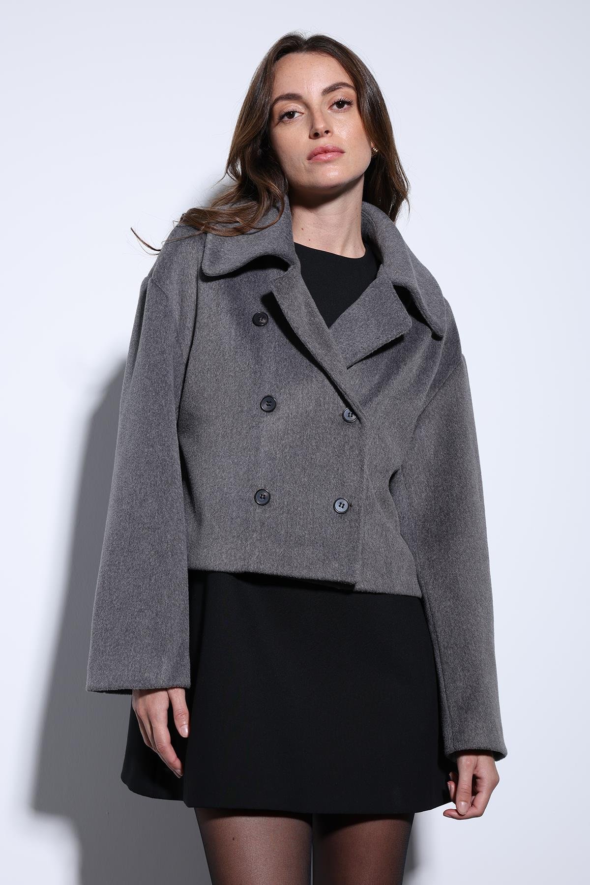 Antioch Antrasit Kruvaze Kadın Kısa Kaban