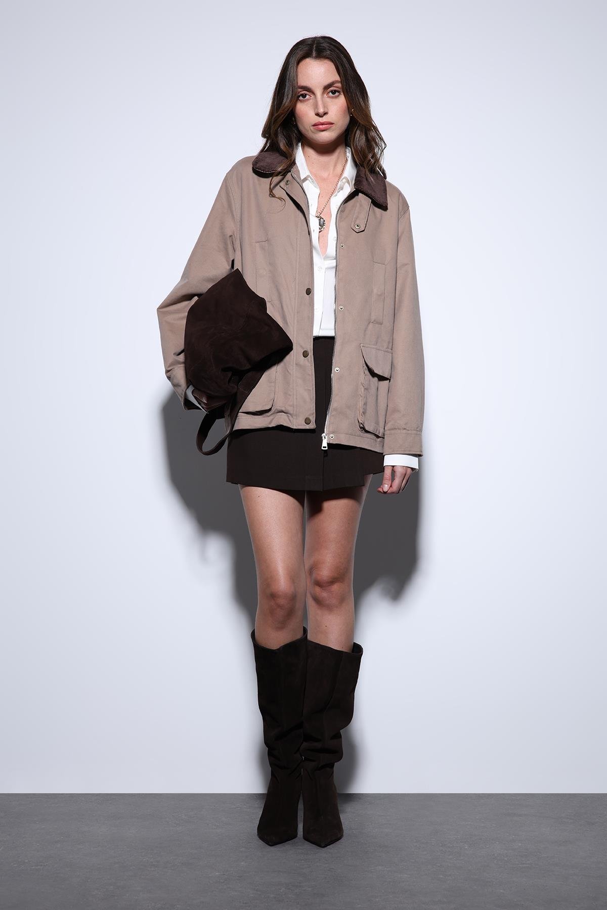 Antioch Bej Kontrast Yaka Kadın Ceket (BA25Y424)