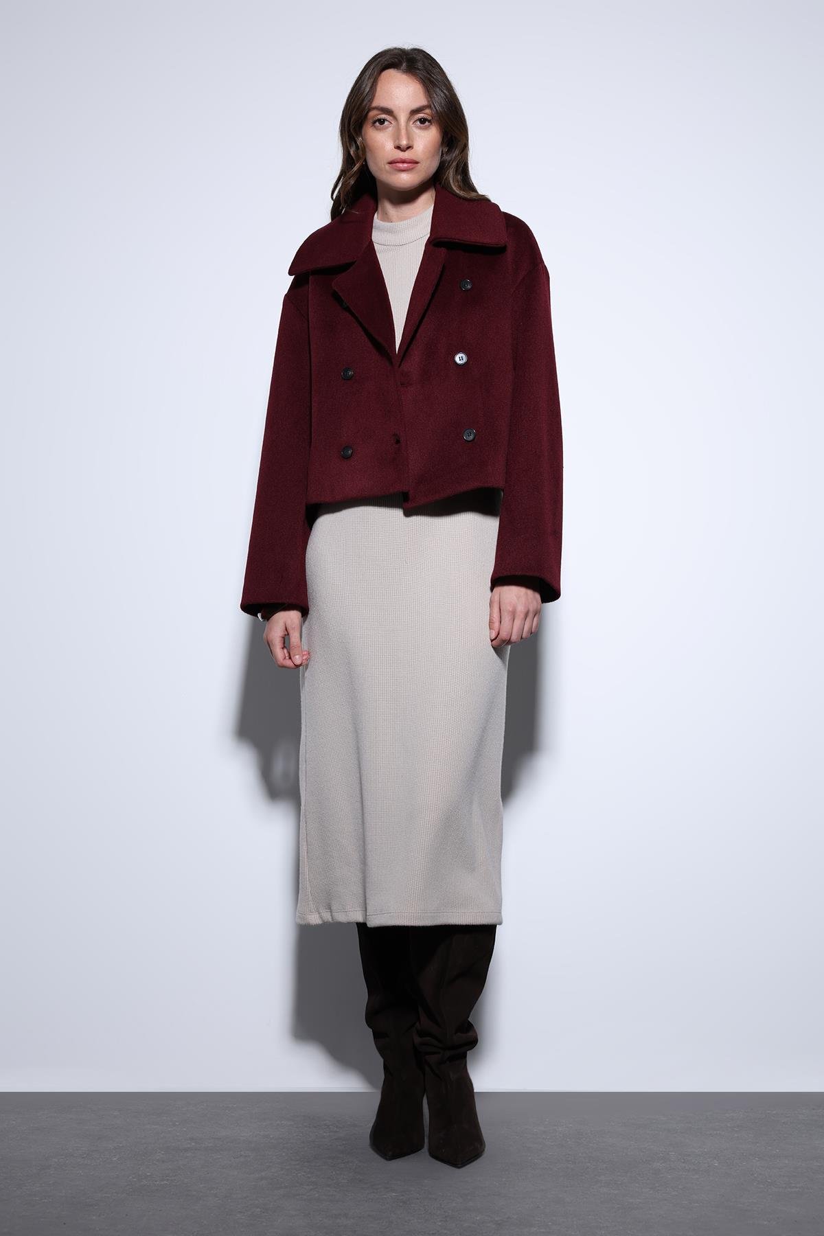 Antioch Bordo Kruvaze Kadın Kısa Kaban