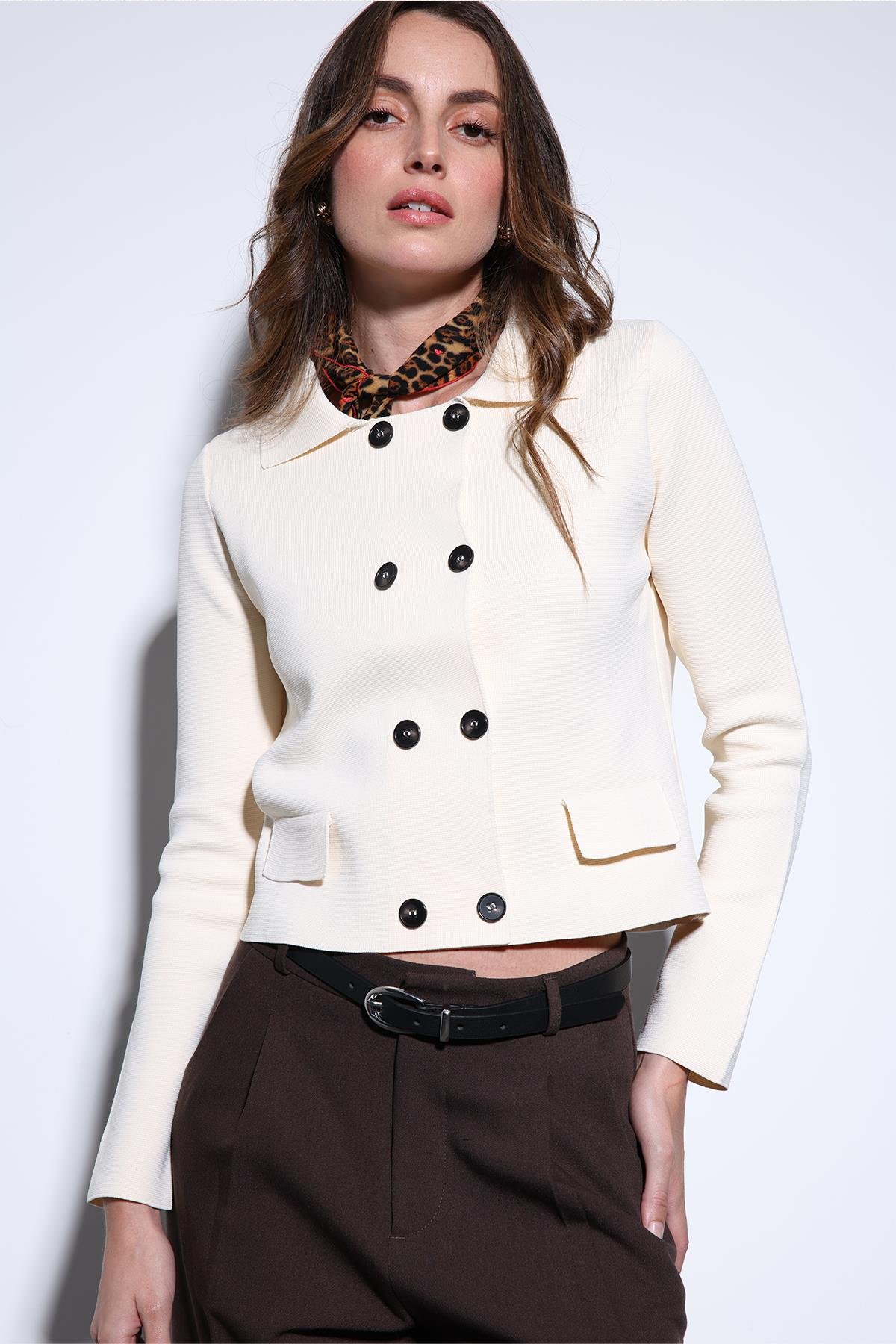 Antioch Ekru Kruvaze Kapama Kadın Triko Hırka
