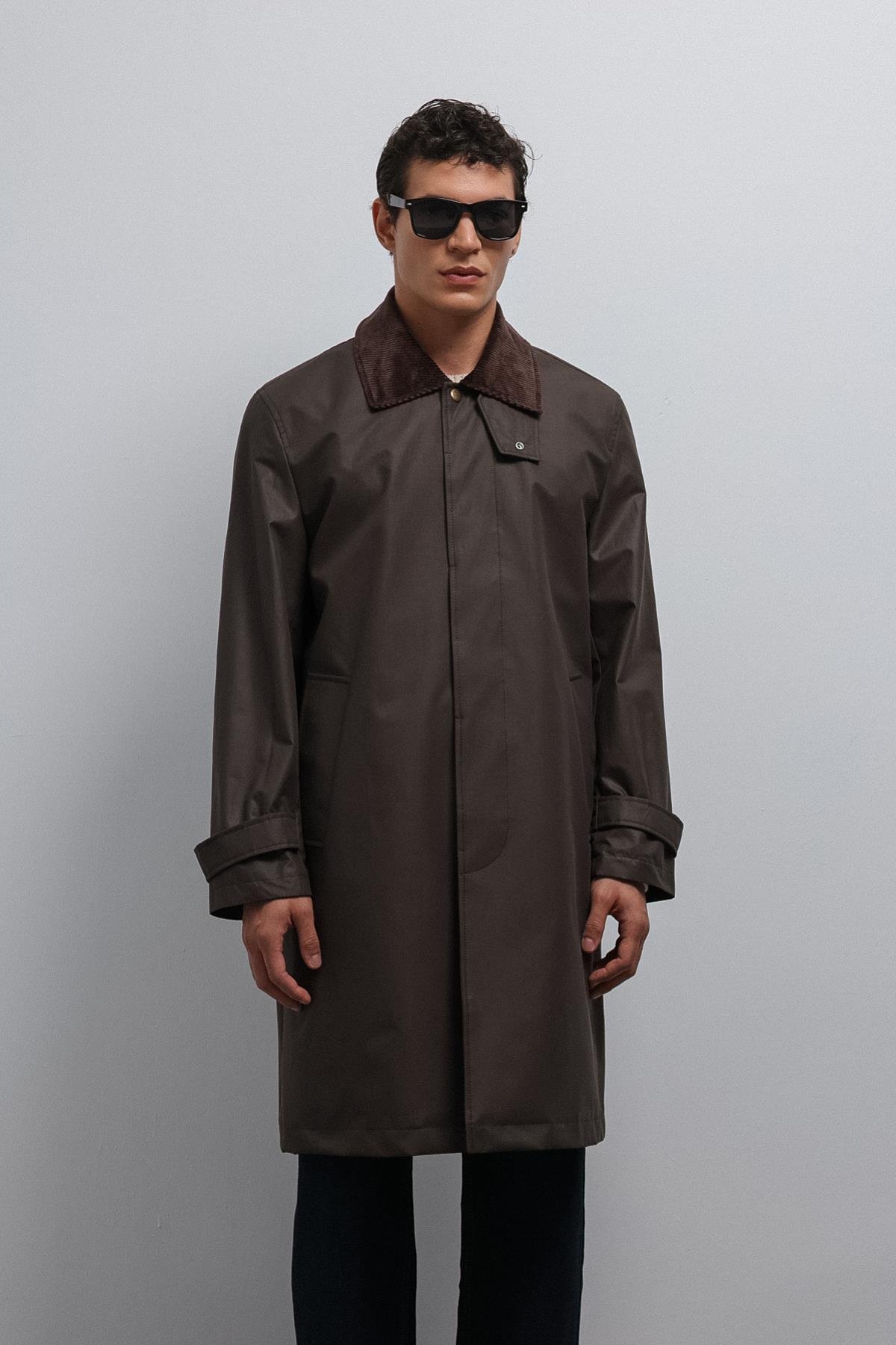 Antioch Kahve Kontrast Yaka Teknik Erkek Trençkot