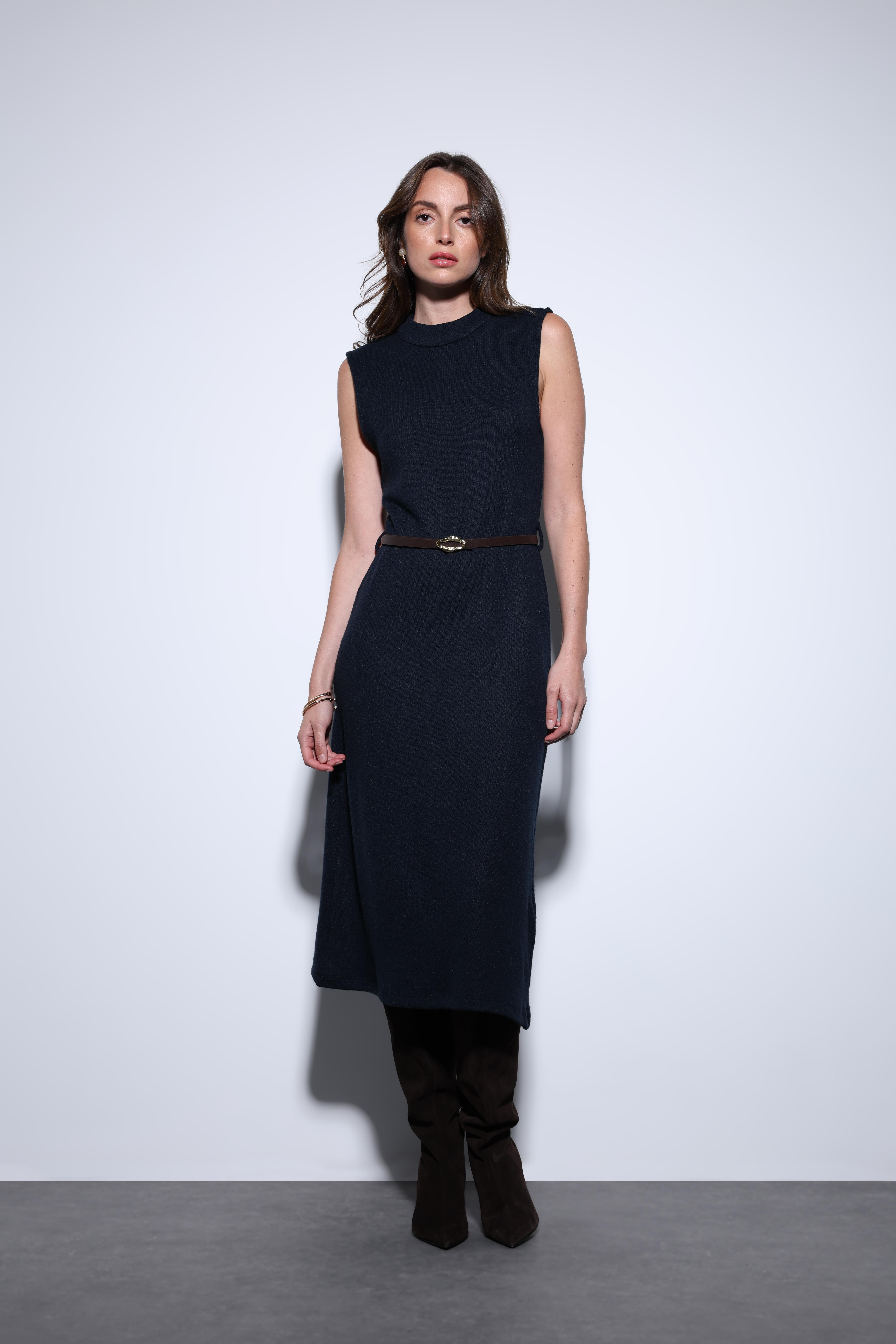 Antioch Lacivert Kemer Detaylı Kadın Midi Elbise (BA25Y014)