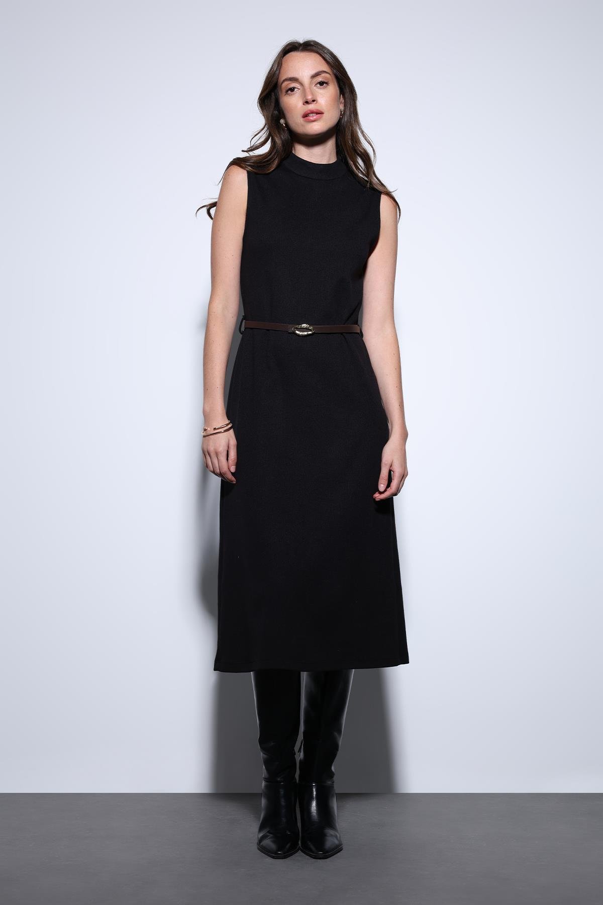 Antioch Siyah Kemer Detaylı Kadın Midi Elbise (BA25Y014)