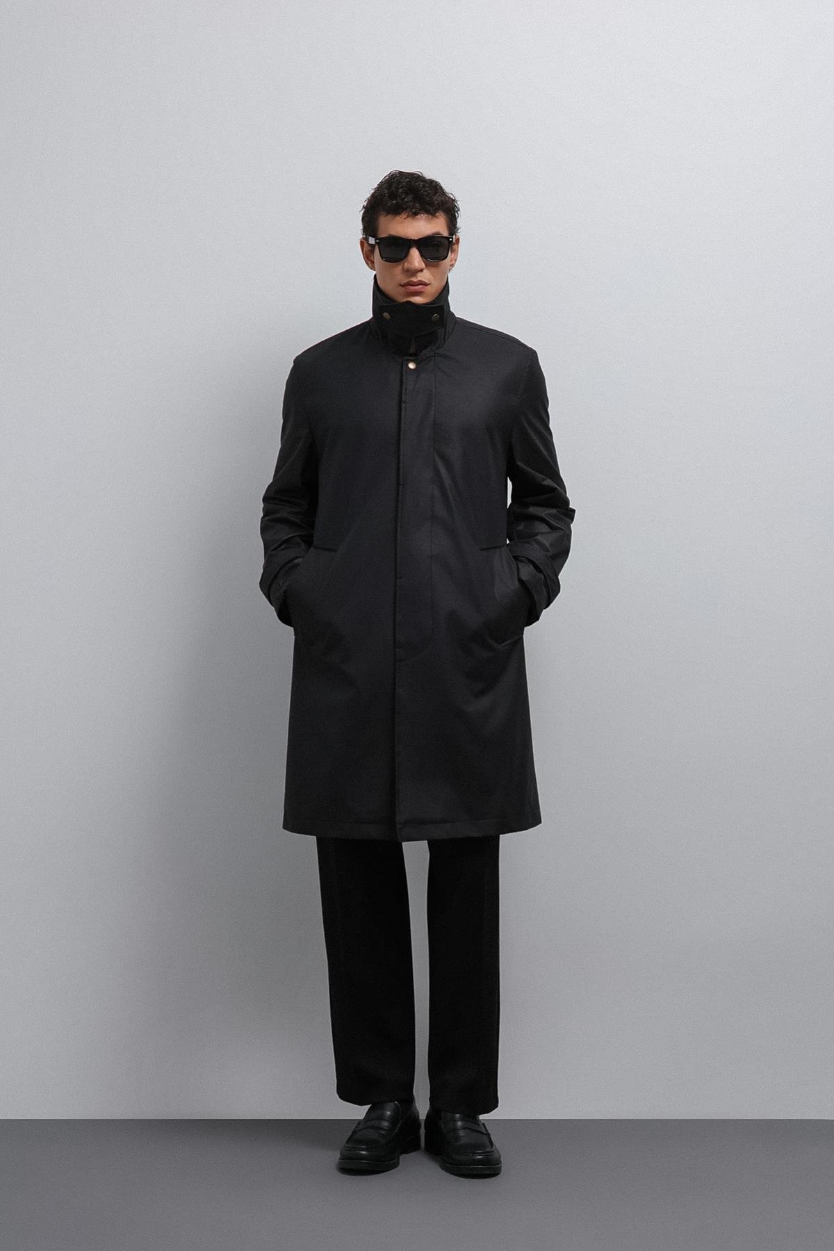 Antioch Siyah Kontrast Yaka Teknik Erkek Trençkot