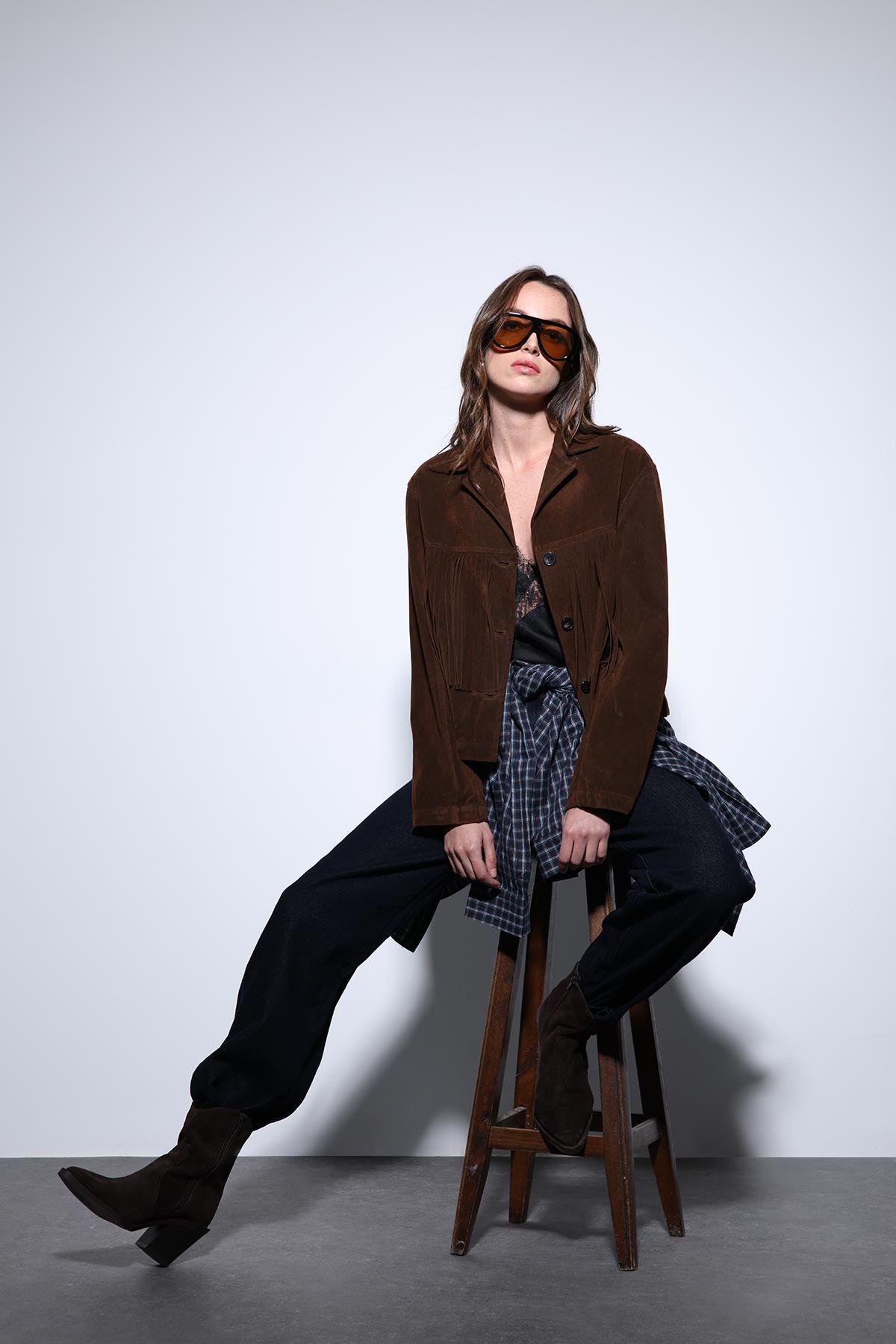 Antioch Kahve Püskül Detaylı Süet Kadın Ceket (BA25Y425)