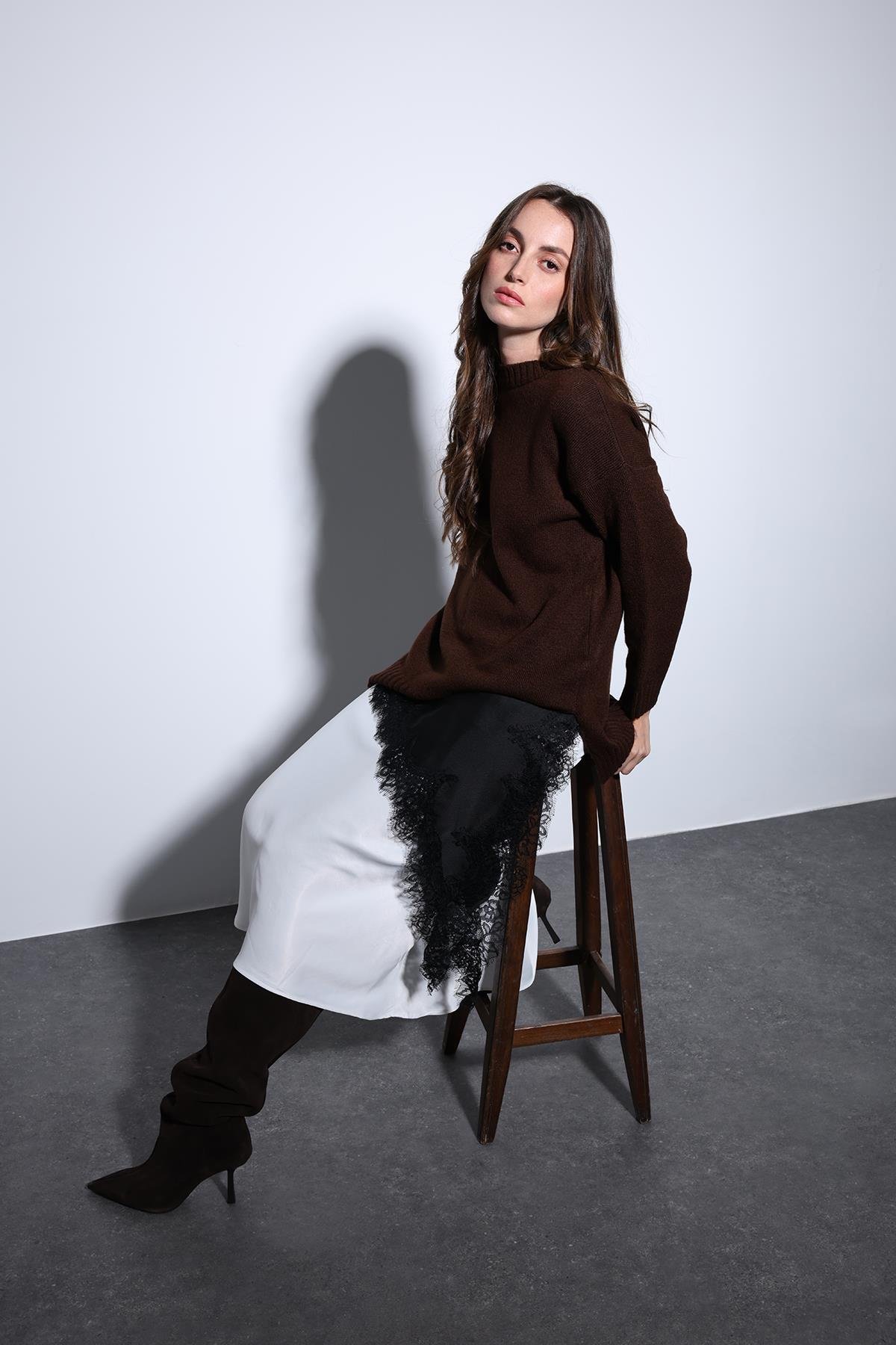 Antioch Kahve Yırtmaç Detaylı Kadın Kazak